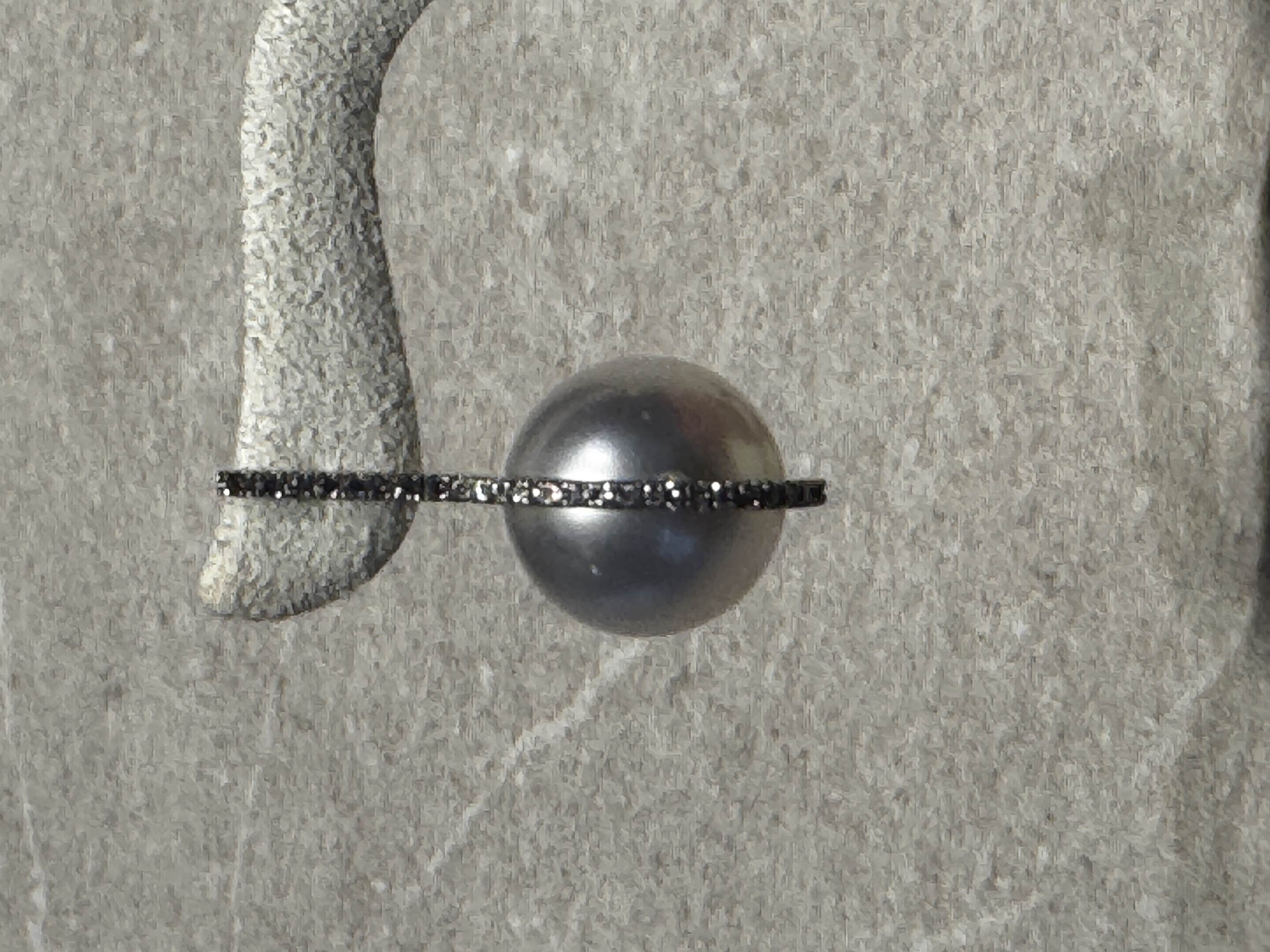 oorbellen in wit goud 18kt bezet met diamant en afgewerkt met heel mooie zuidzeeparels
