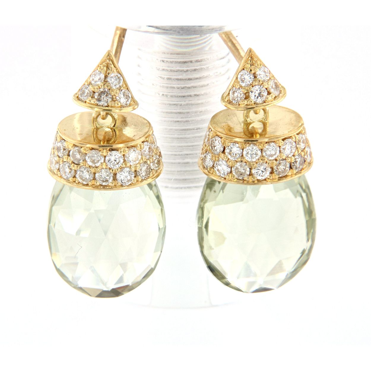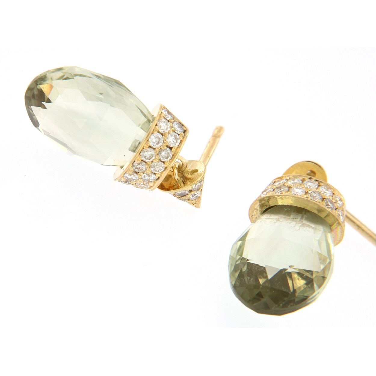 oorbellen in 18kt geel goud met briljant 0.66ct en prasiolith 10ct