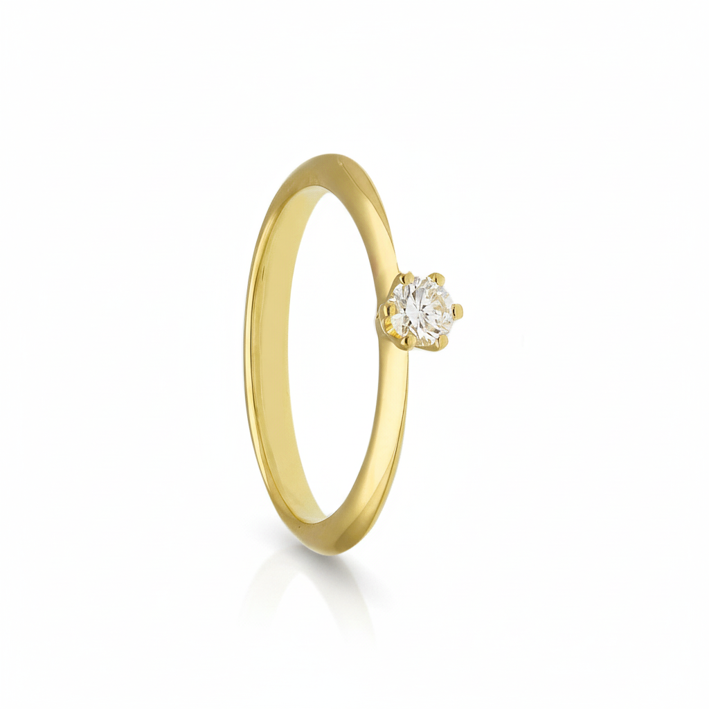 18 karaat goud geel verlovingsring  + 0.15ct diamant/briljant slijp