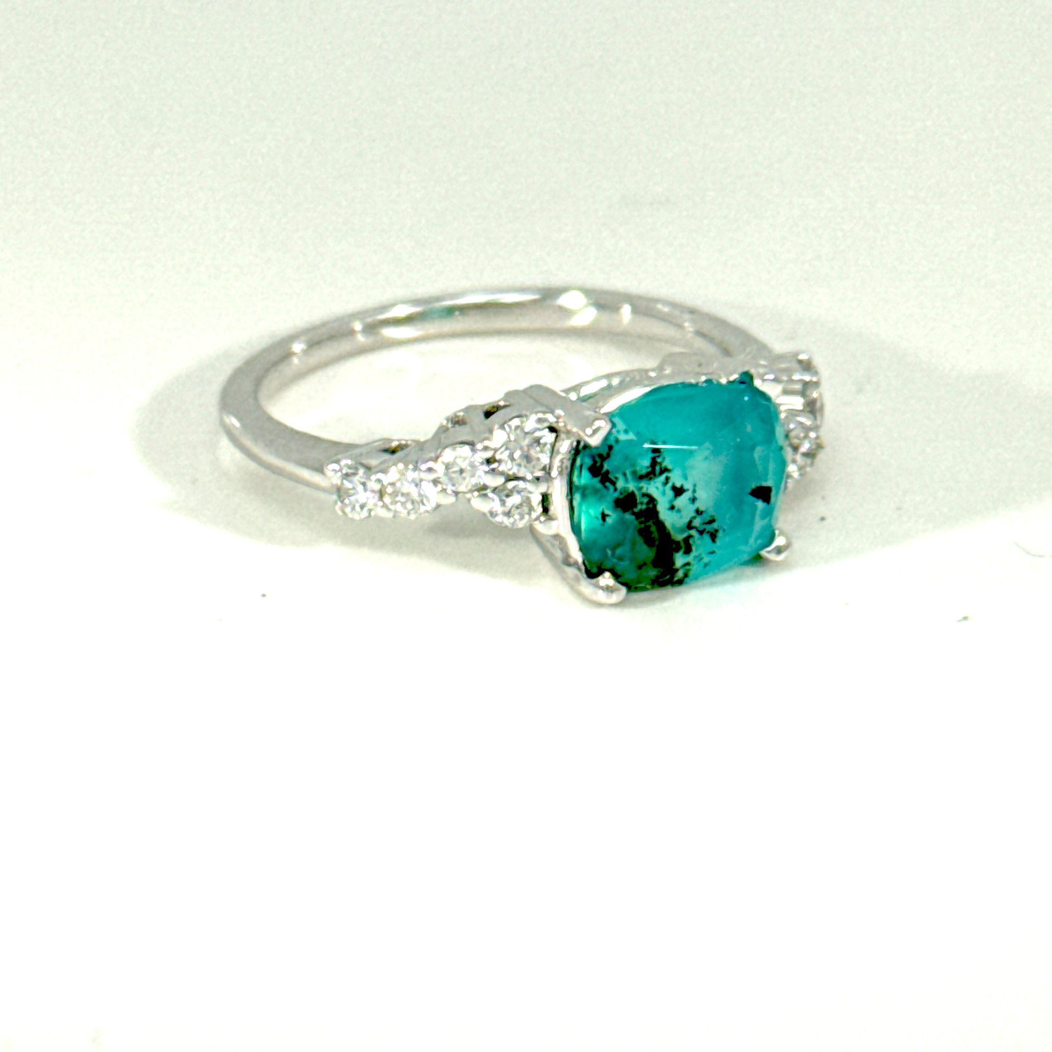 ring 18 karaat wit goud eigen creatie met Opaal de Peru en 0.20ct natuurlijke briljant