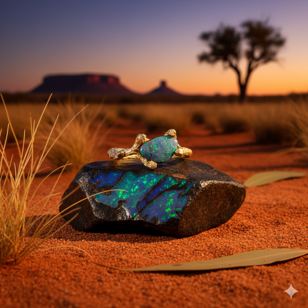 GG 18 karaat ring nature met opaal en briljant