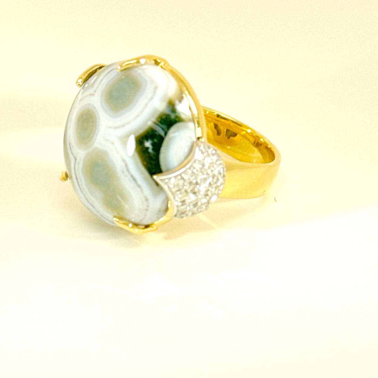 18kt geel gouden ring oceaanjaspis + 0.2ct brilj