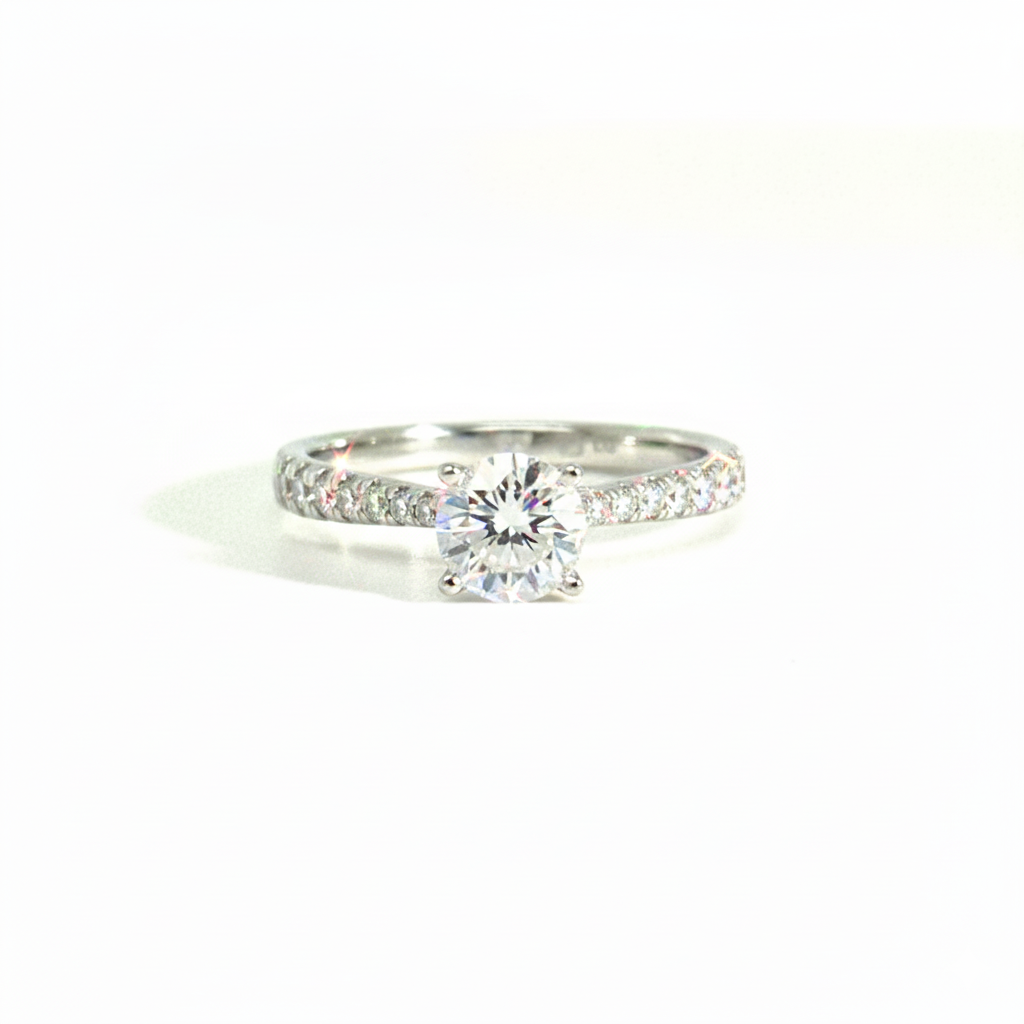 18kt wit gouden ring met LAB grown centrale diamant (briljant geslepen) van 0.71ct D/Vvs2 en in de band 0.22ct briljantjes
