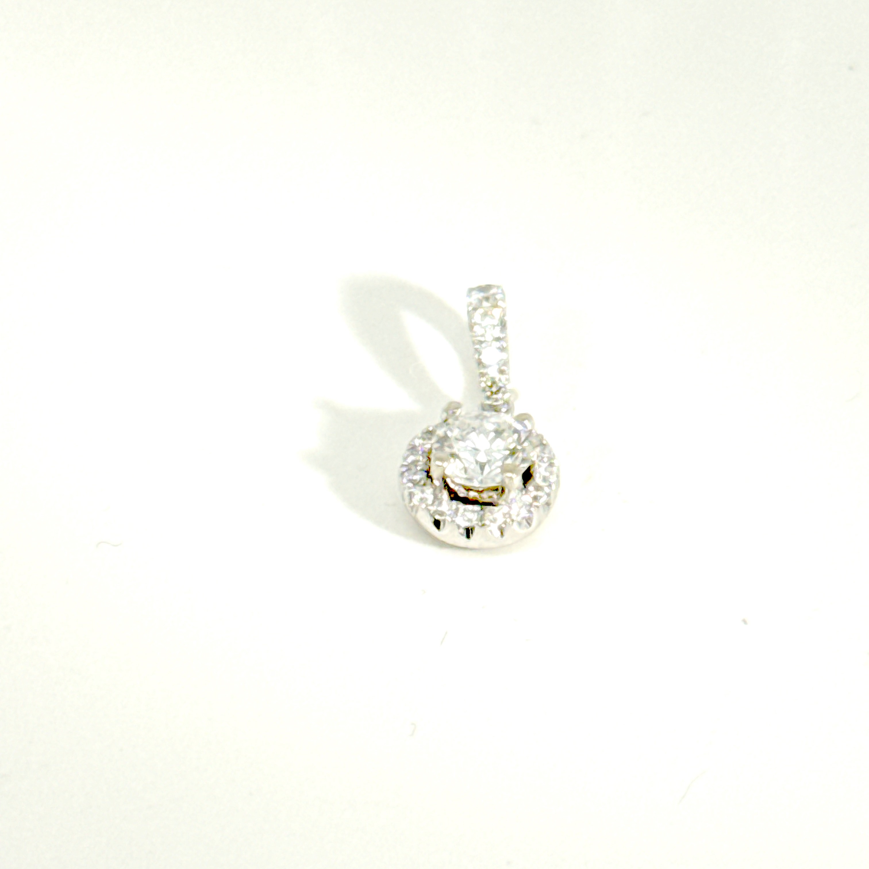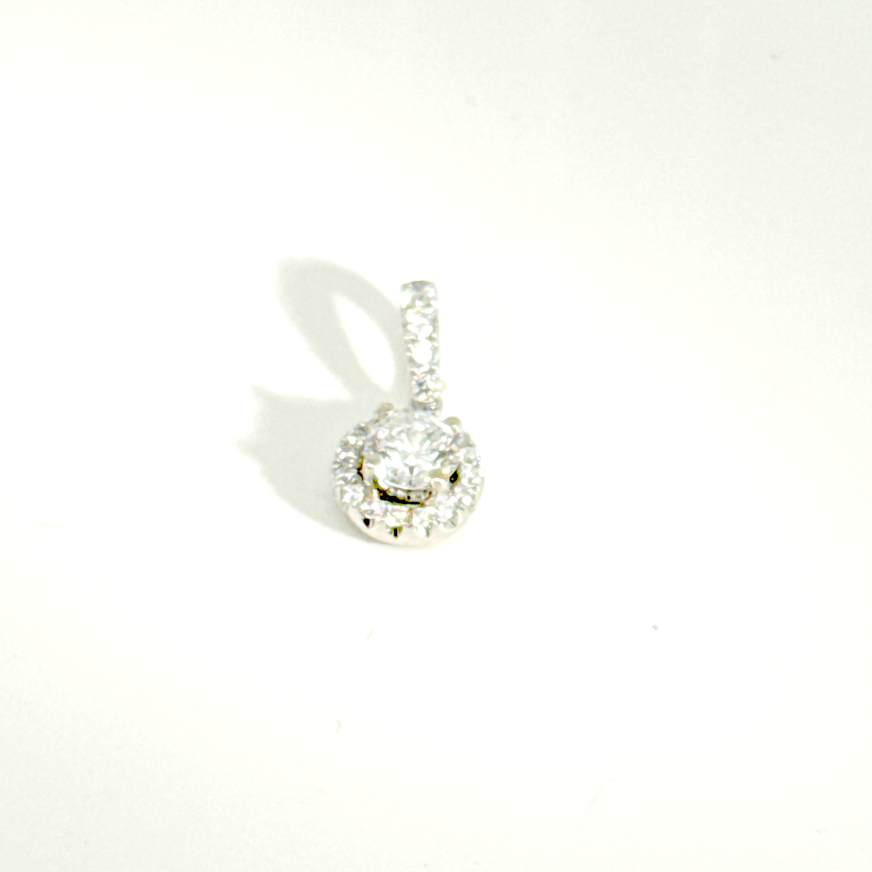 hanger in wit goud 18kt met 0.18ct kleine diamanten die rond een mooie briljant van 0.34ct G/Si1 zitten