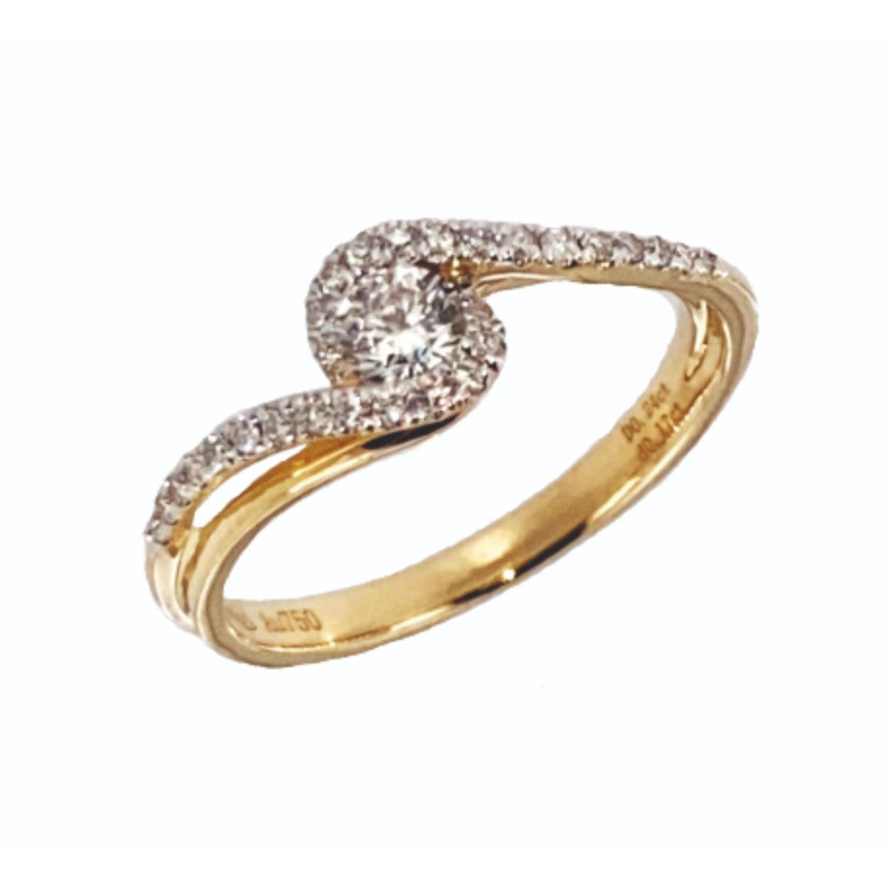 Bicolor 18 kt ring +0.25ct brilj en centrale steen 0.17ct