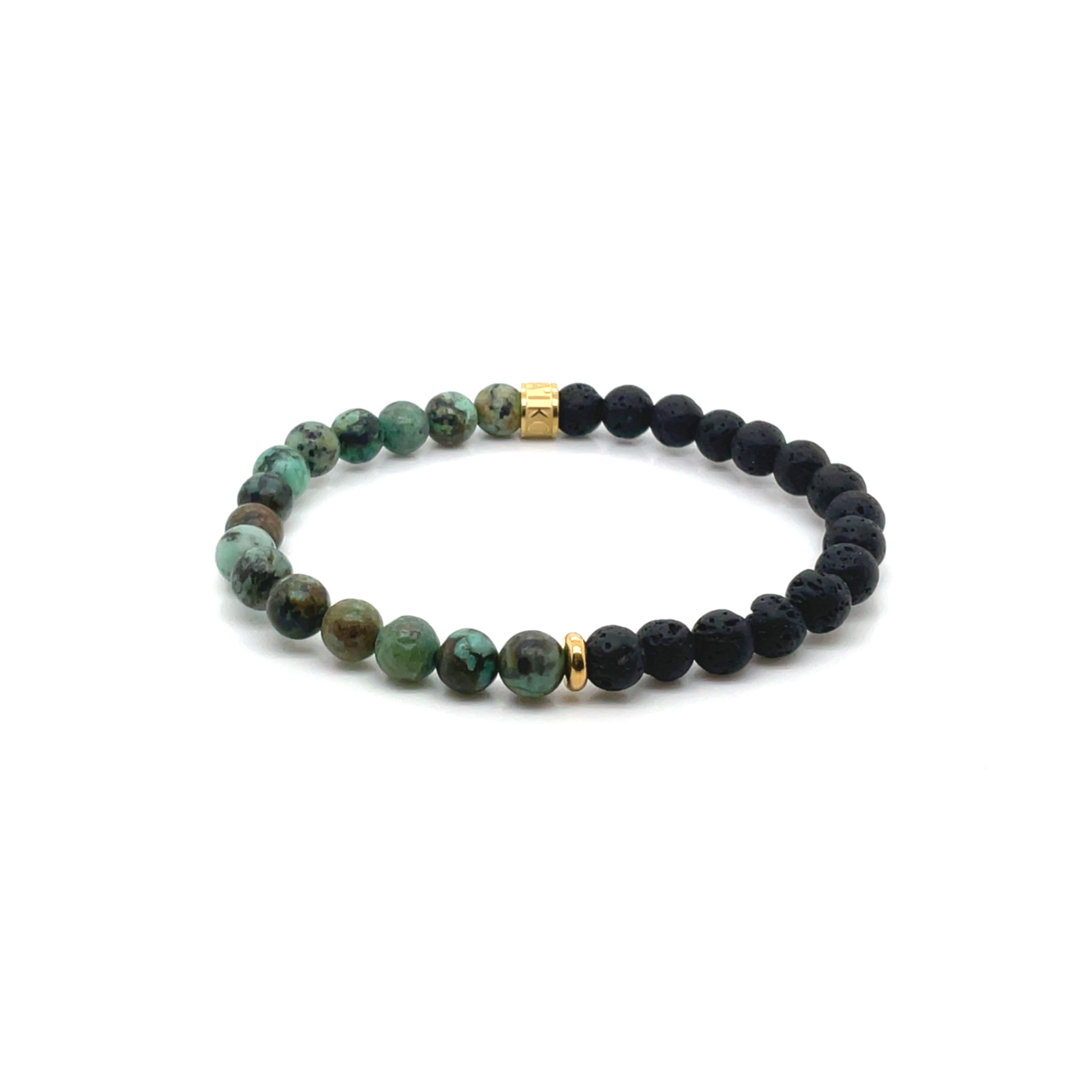 Armband met Afrikaanse turkoois en zwarte agaat 6 mm en verguld staal