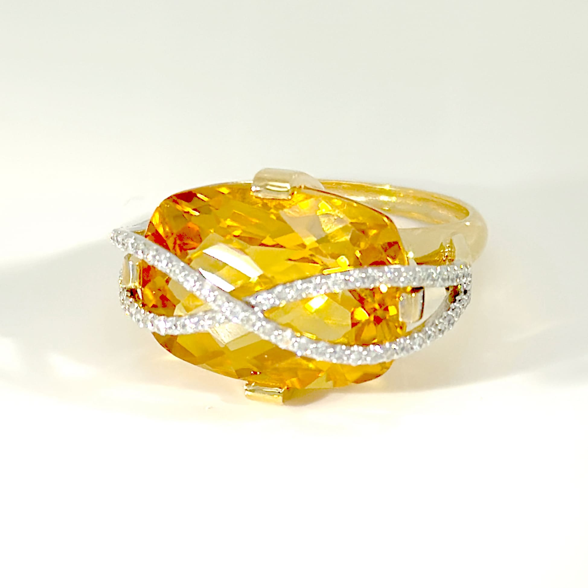 Eigen creatie in 18kt goud bezet met diamant 0.22ct en 1 grote madeira citrine