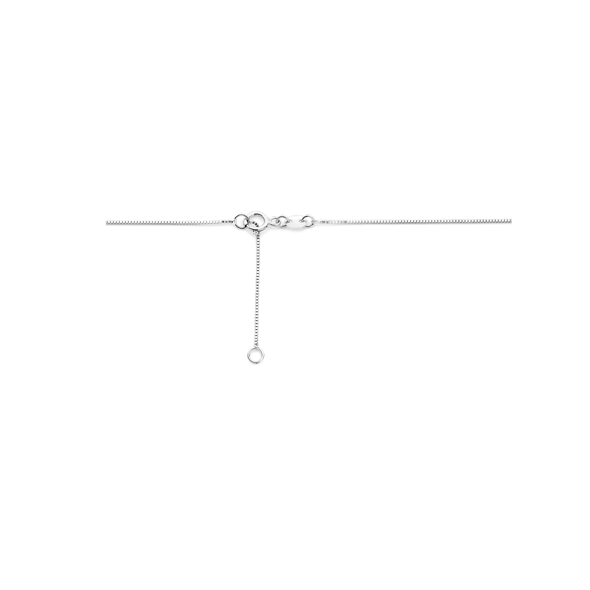 14k Witgouden collier uitgevoerd met diamant. Het collier heeft draaglengtes van 42 en 45cm. De schakelbreedte is 0.6mm.