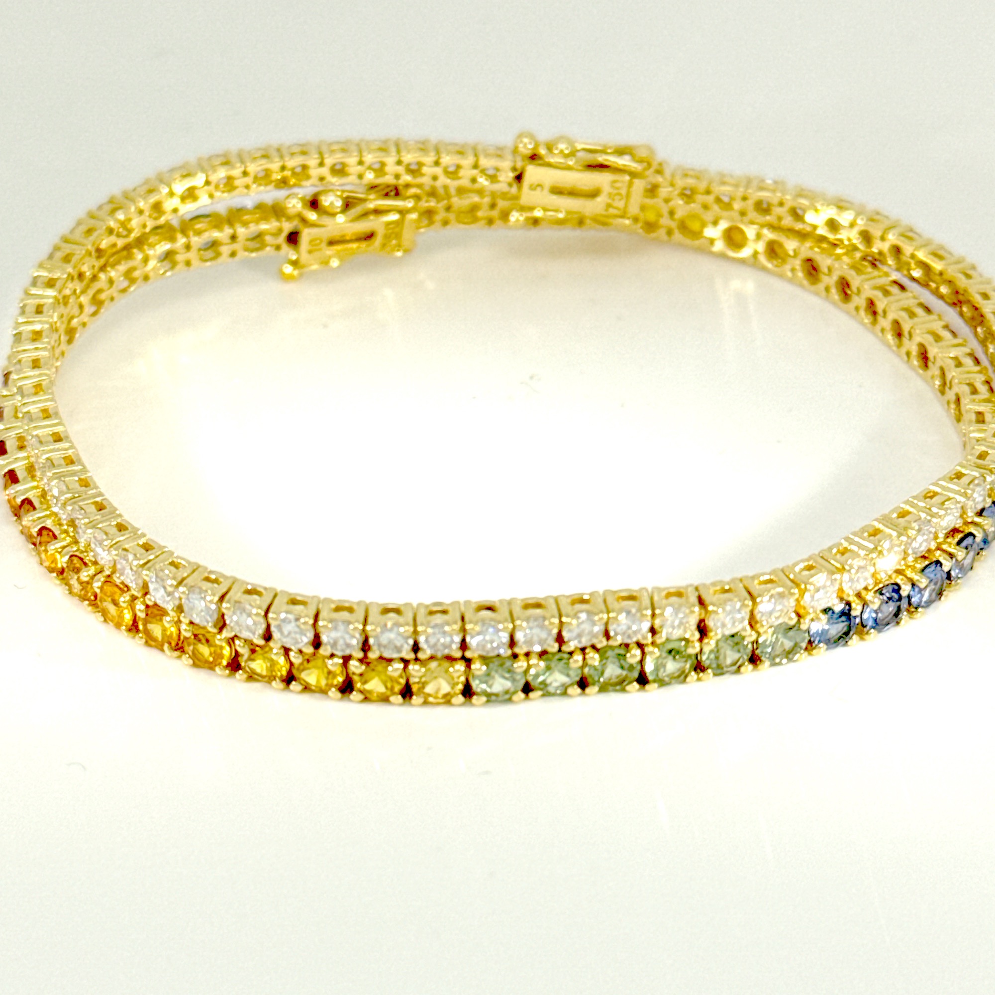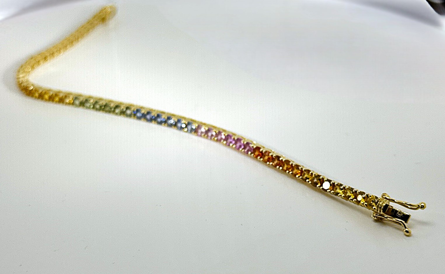 Prachtige rivière armband in geel goud 18kt bezet met prachtige natuurlijke saffieren 5.6ct