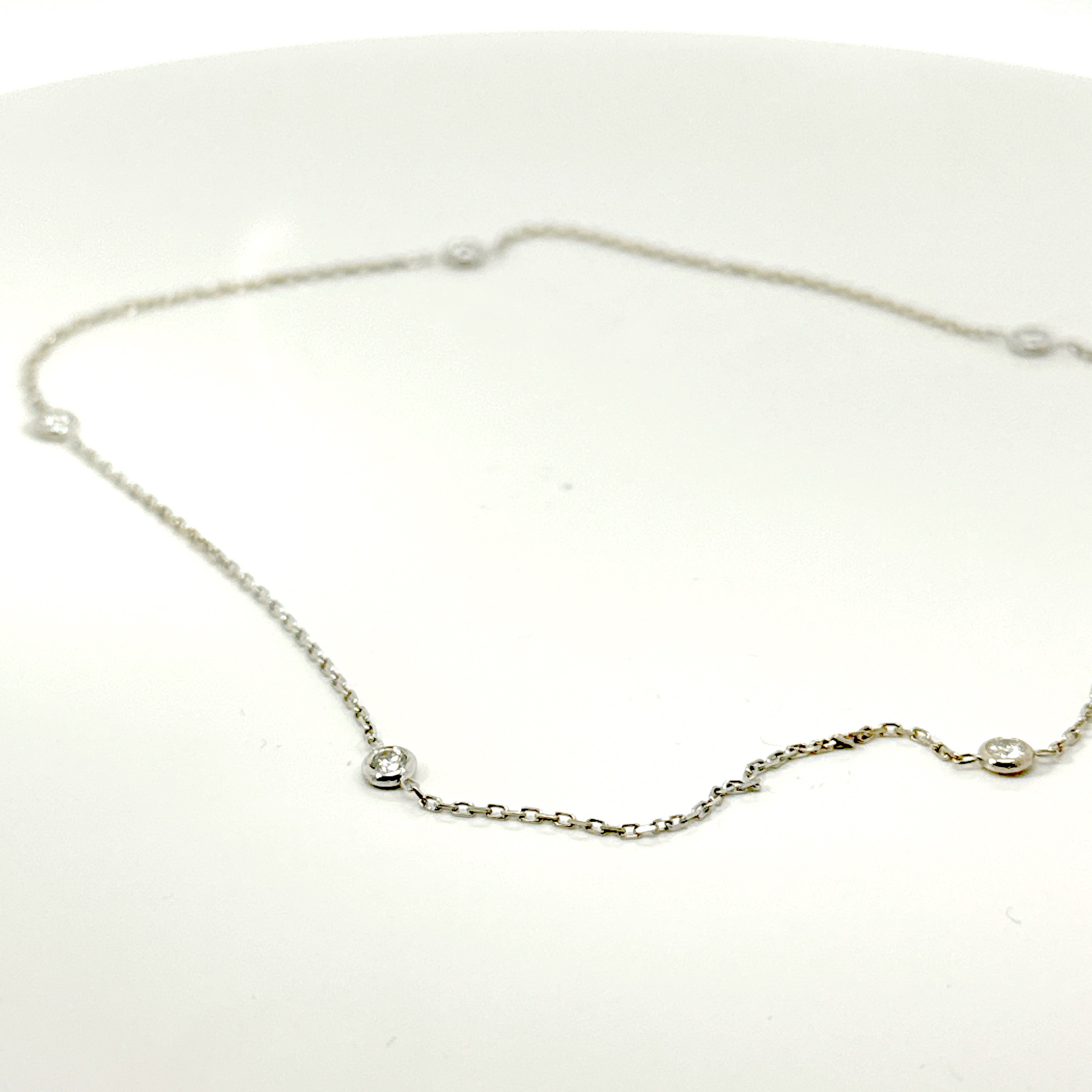 wit gouden ketting met een paar diamanten gezet  0.25ct collier neige