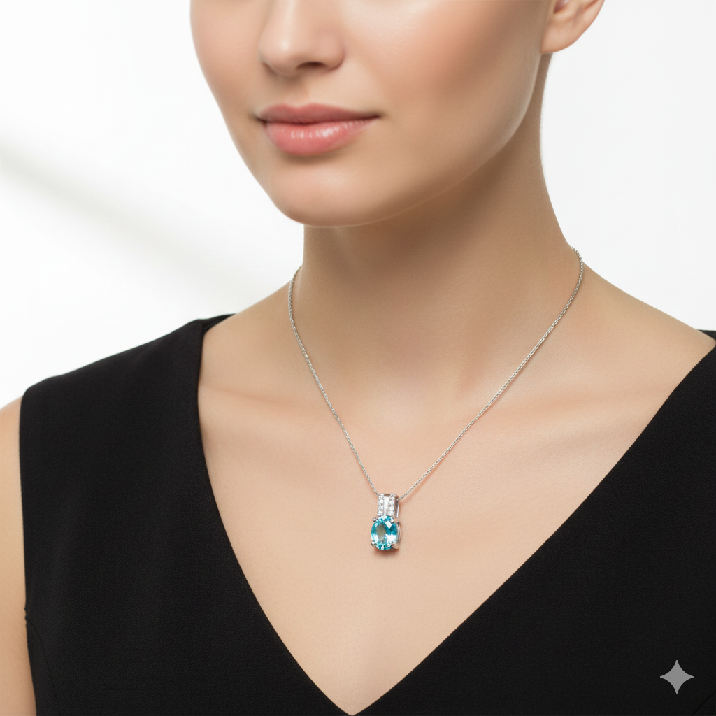 Eigen creatie hanger in witgoud 18kt bezet met 0.06ct diamant (briljant) en een natuurlijke zircoon van 3.15ct