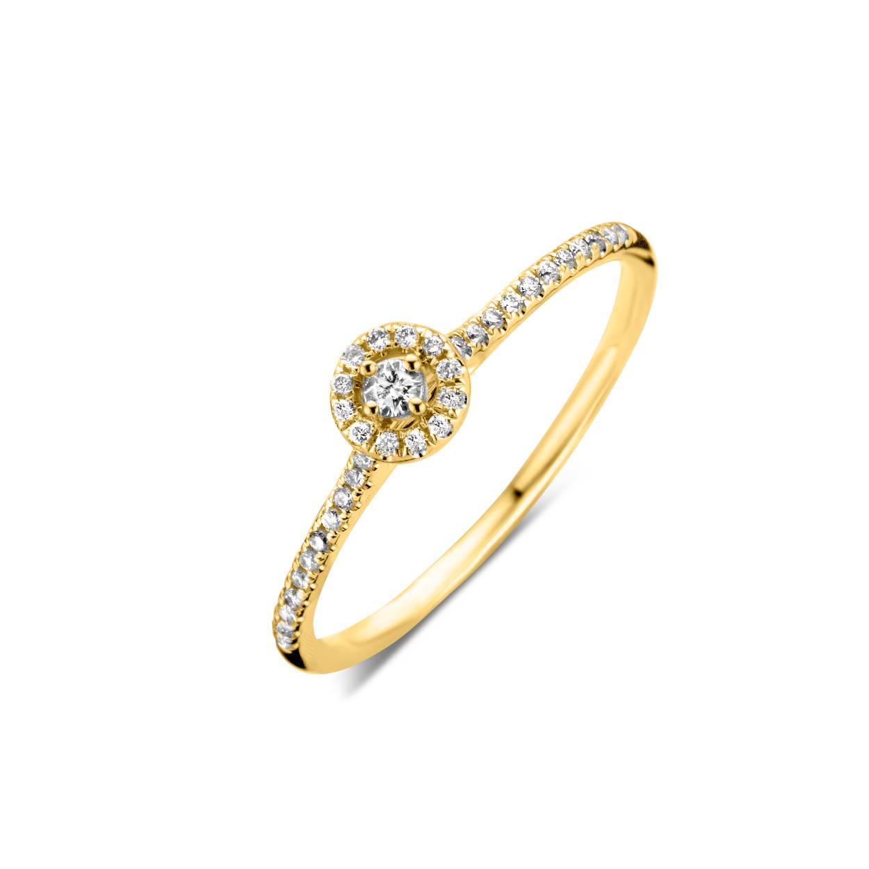 Solitair / verlovingsring geel goud 18 kt + 0.13ct briljant