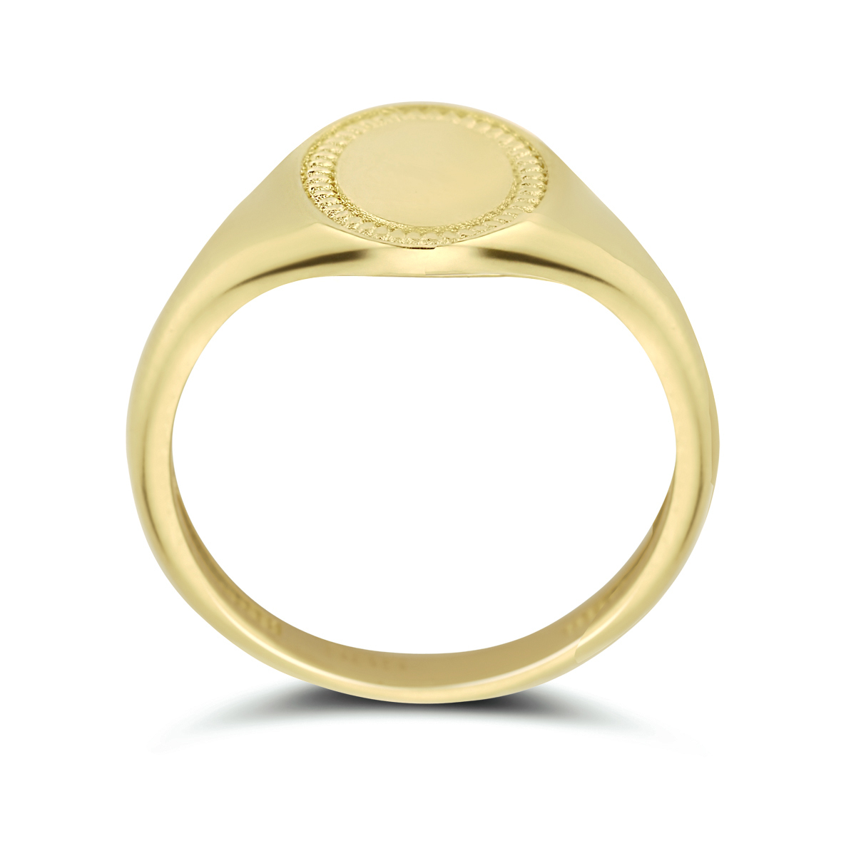14k Geelgouden graveerring. De ring heeft een breedte van 9.5mm en de maat van de ring is maat 16