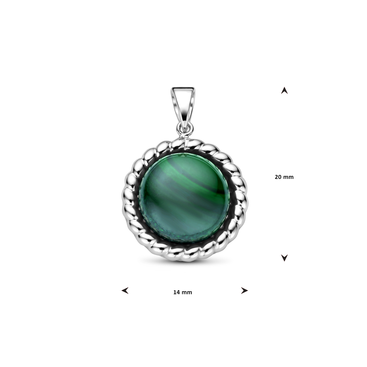 Gerhodineerd 925 zilveren hanger uitgevoerd met malachiet. De hanger heeft een totale hoogte van 20mm.