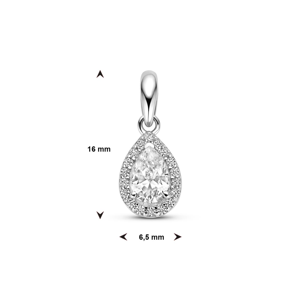 Gerhodineerd 925 zilveren hanger uitgevoerd met zirkonia. De hanger heeft een  totale hoogte van 16mm.