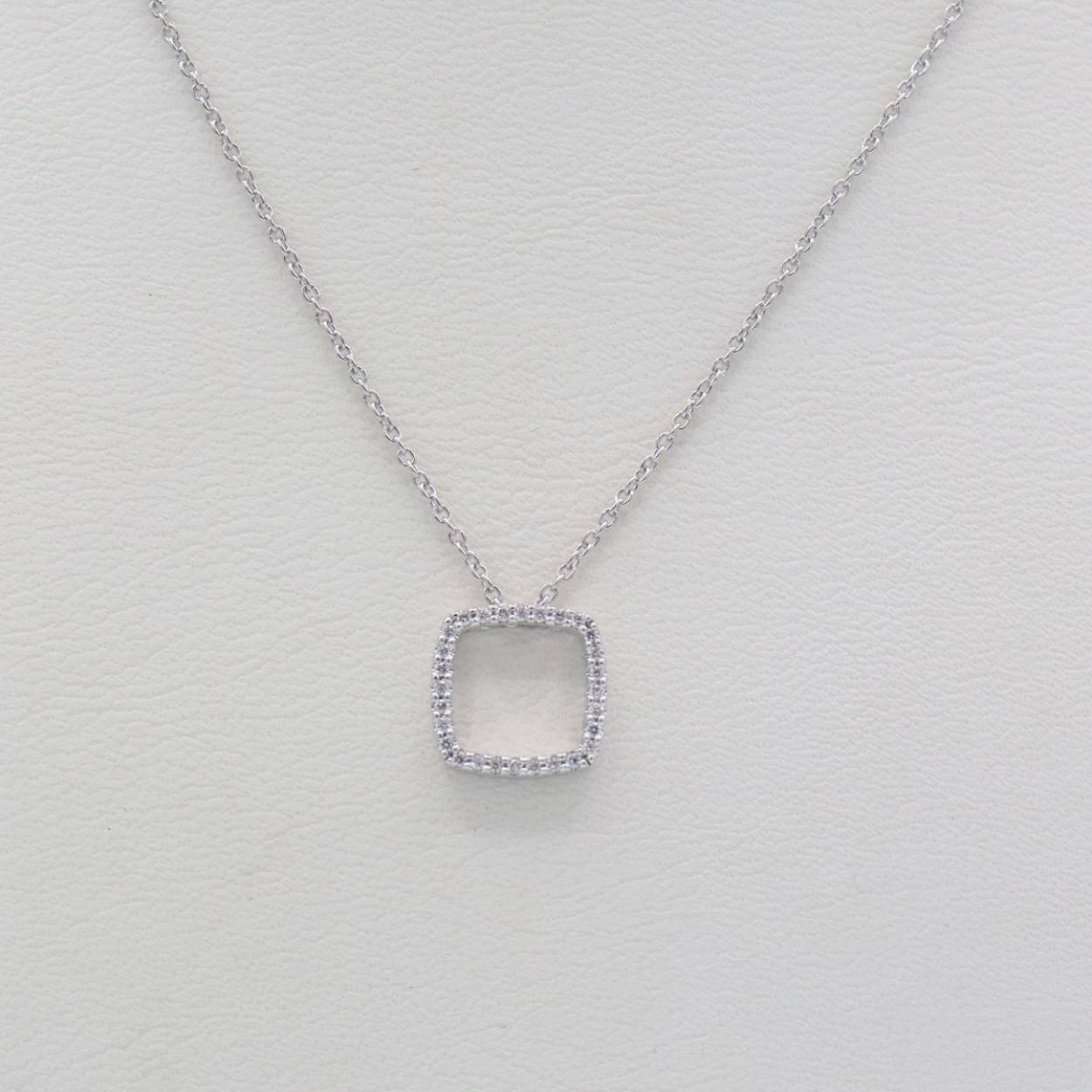Ketting in witgoud met hanger in vierkant met diamant 0.07ct