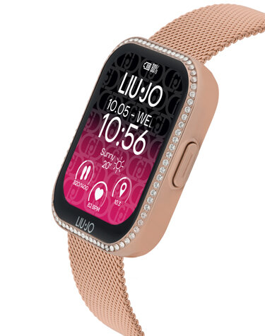 Het uurwerk heeft een moderne aluminium/alloy kast van 36 x 43 mm en een roestvrijstalen band met roségoudkleurige coating.