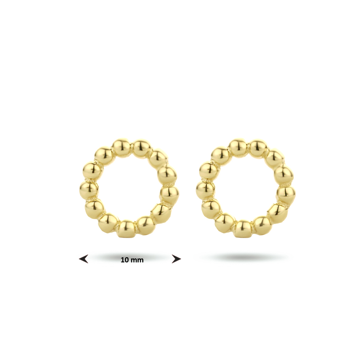 Geelgoud op 925 zilveren oorknoppen uitgevoerd met bolletjes. Geen garantie op plating.