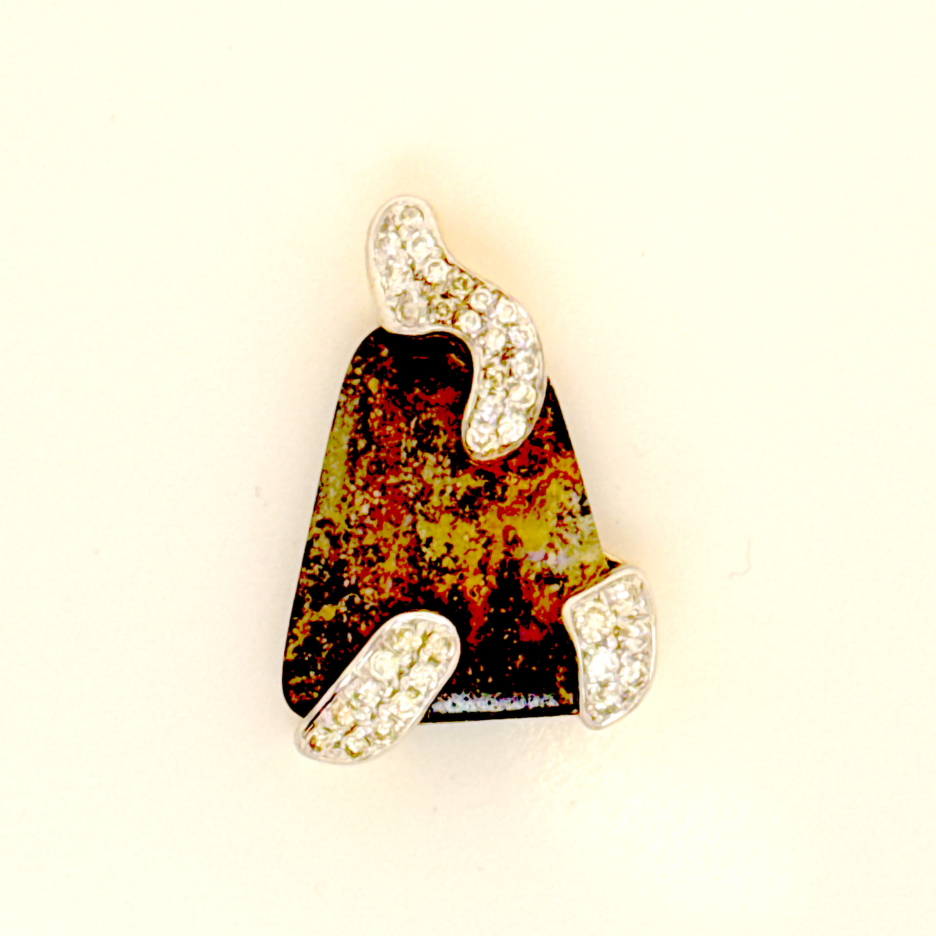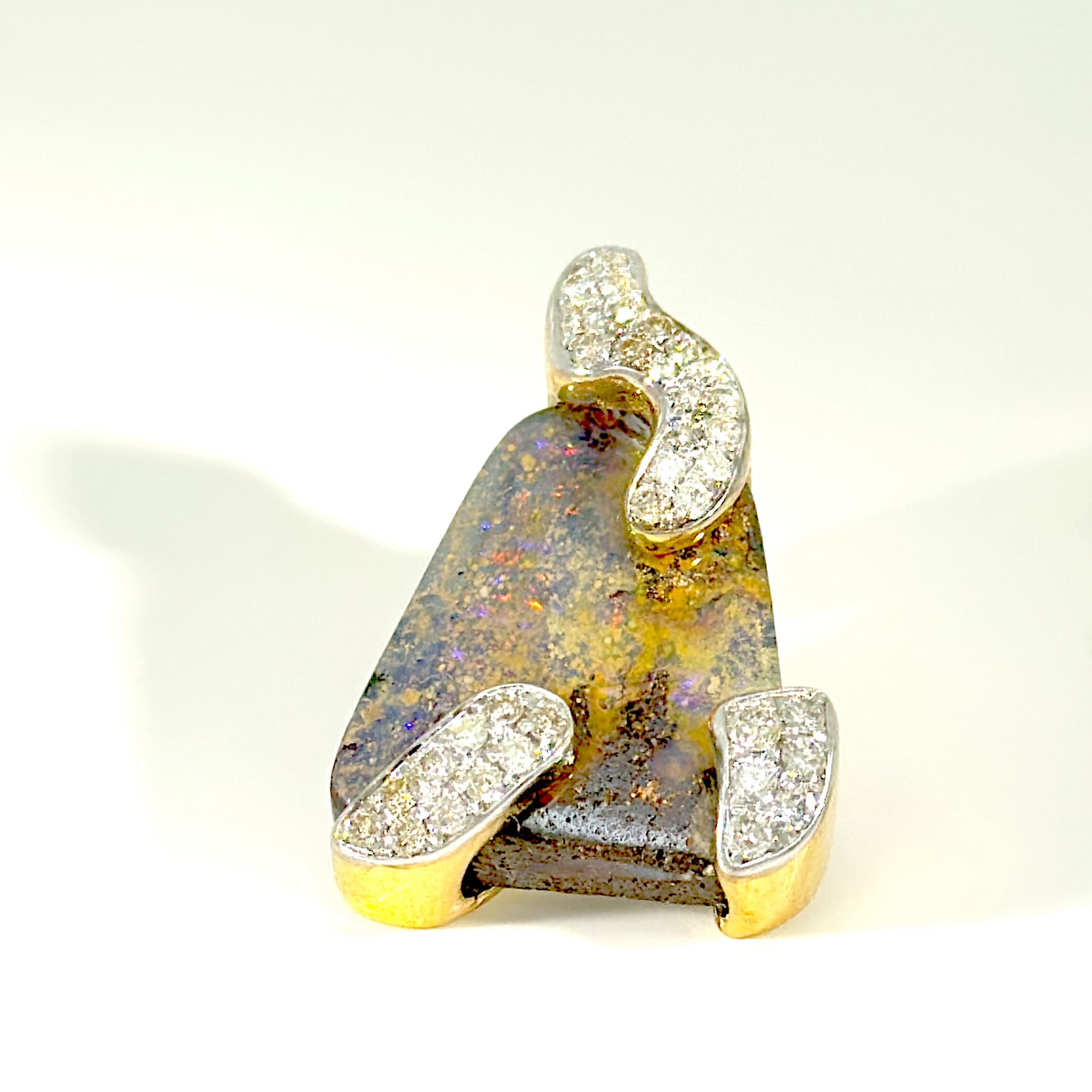 Hanger in 18kt goud (geel en wit) bezet met diamant 0.28ct en 1 grote opaal australië