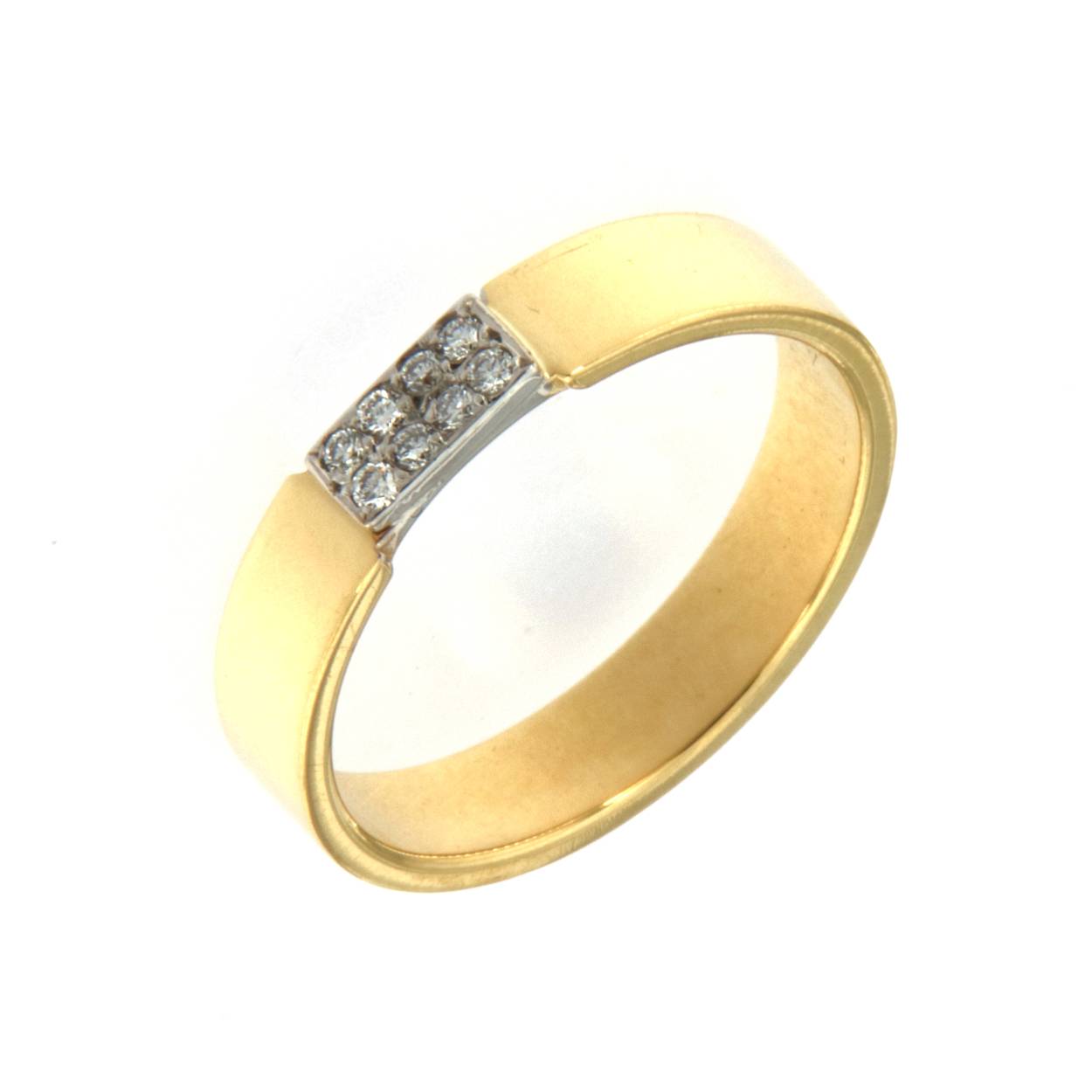 18 karaat geel gouden ring met 0.05ct briljant in wit goud gezet maat 53