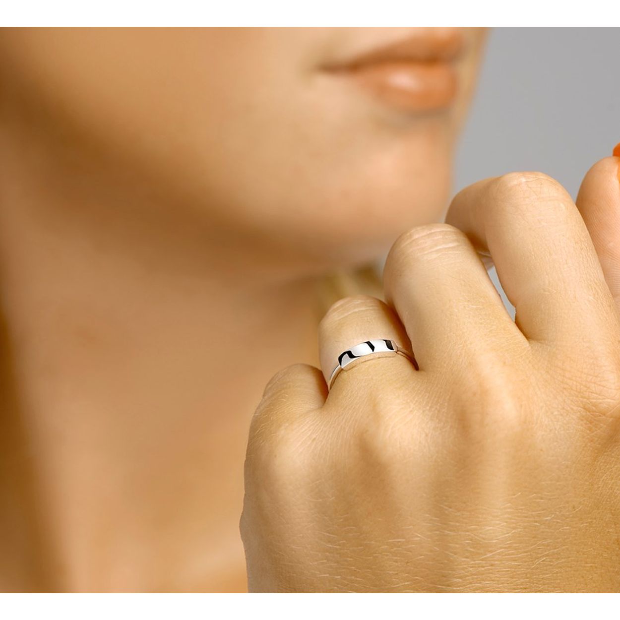 Gerhodineerd 925 zilveren ring uitgevoerd met een balkje. De ring heeft een breedte van 3.5mm.