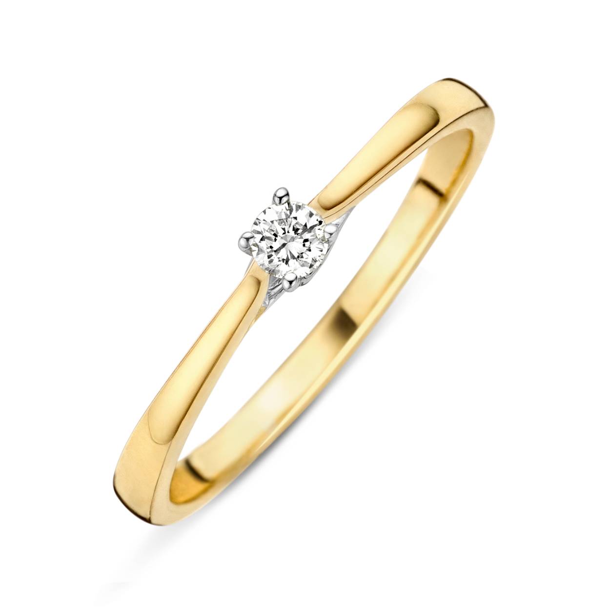 Solitair geel gouden band 18 karaat met wit gouden kopje met 0.08ct
