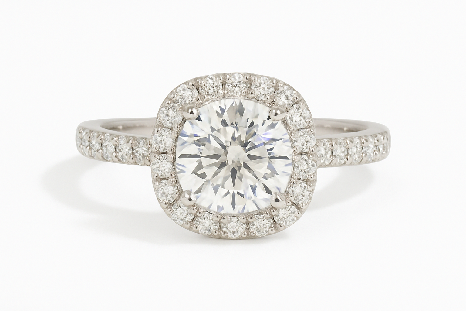 witgouden ring met LAB diamant van 0.52ct E/Vvs2 en diamanten rond de steen en in de ringband voor een totaal van 0.26ct