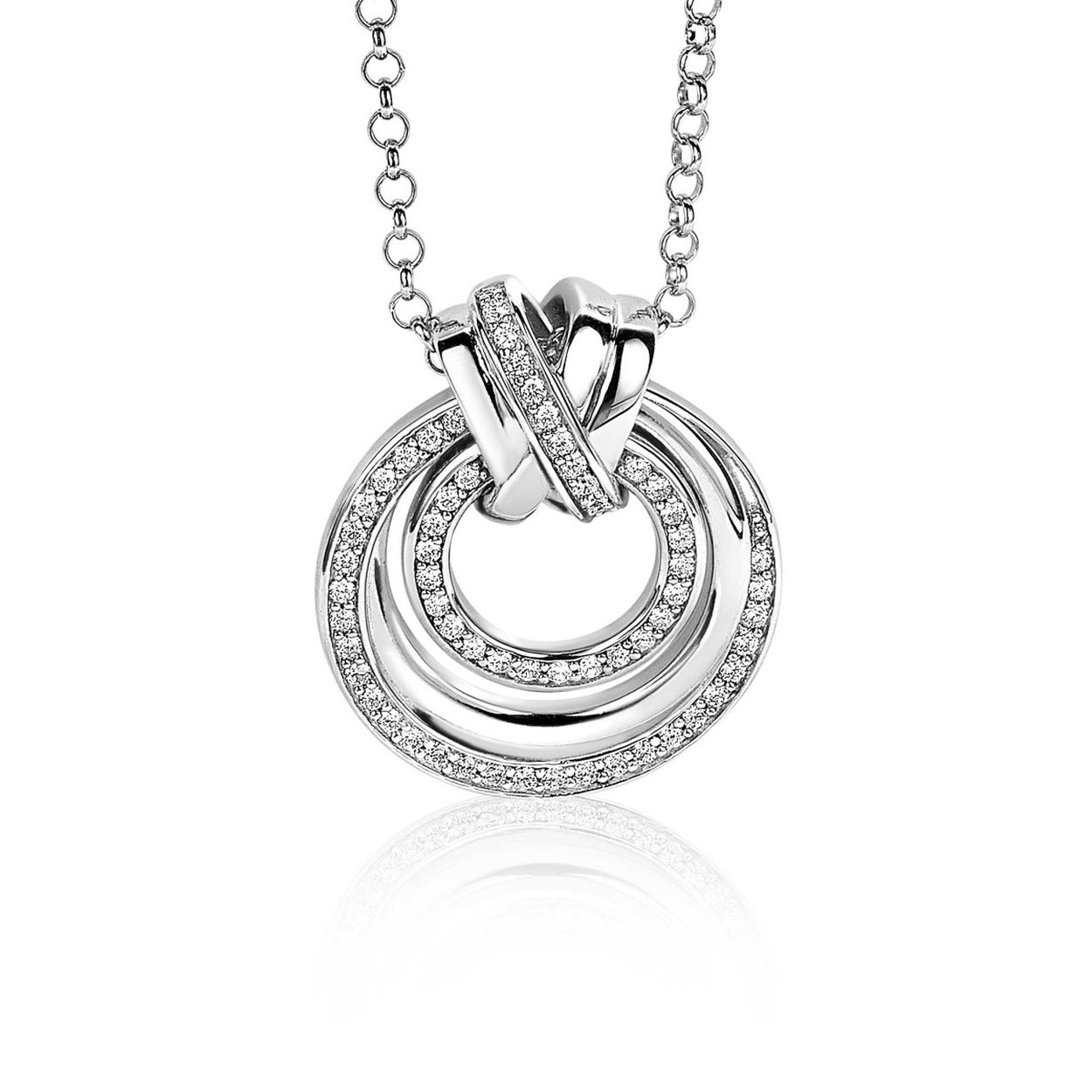 ZINZI zilveren hanger rond kruislings wit 27mm ZIH1791