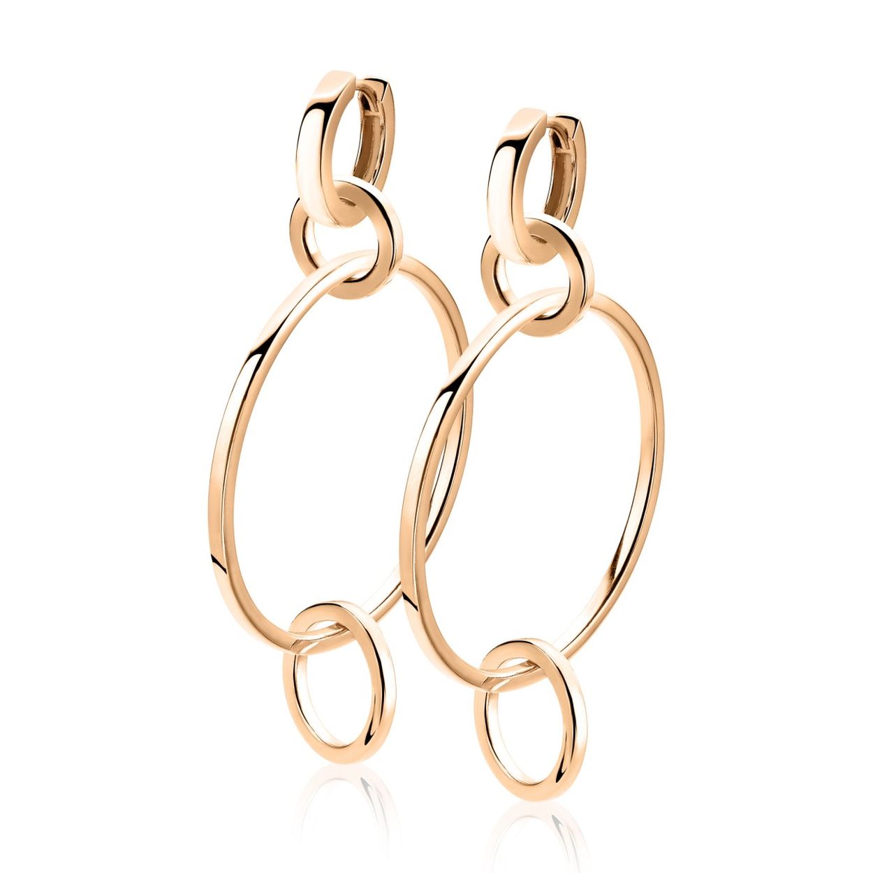 ZINZI zilveren oorbedels rosé verguld, 3 ronde open vormen in elkaar 38mm ZICH1547R