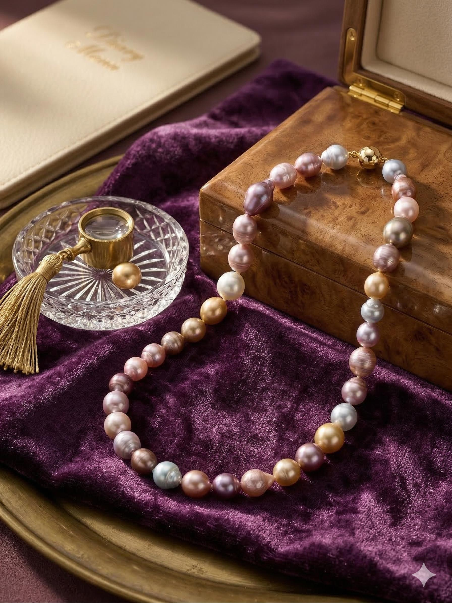 Zuidzeeparel met gouiden slot 45cm zuidzee en zoetwater parel paars en ming roze parel gouden slot